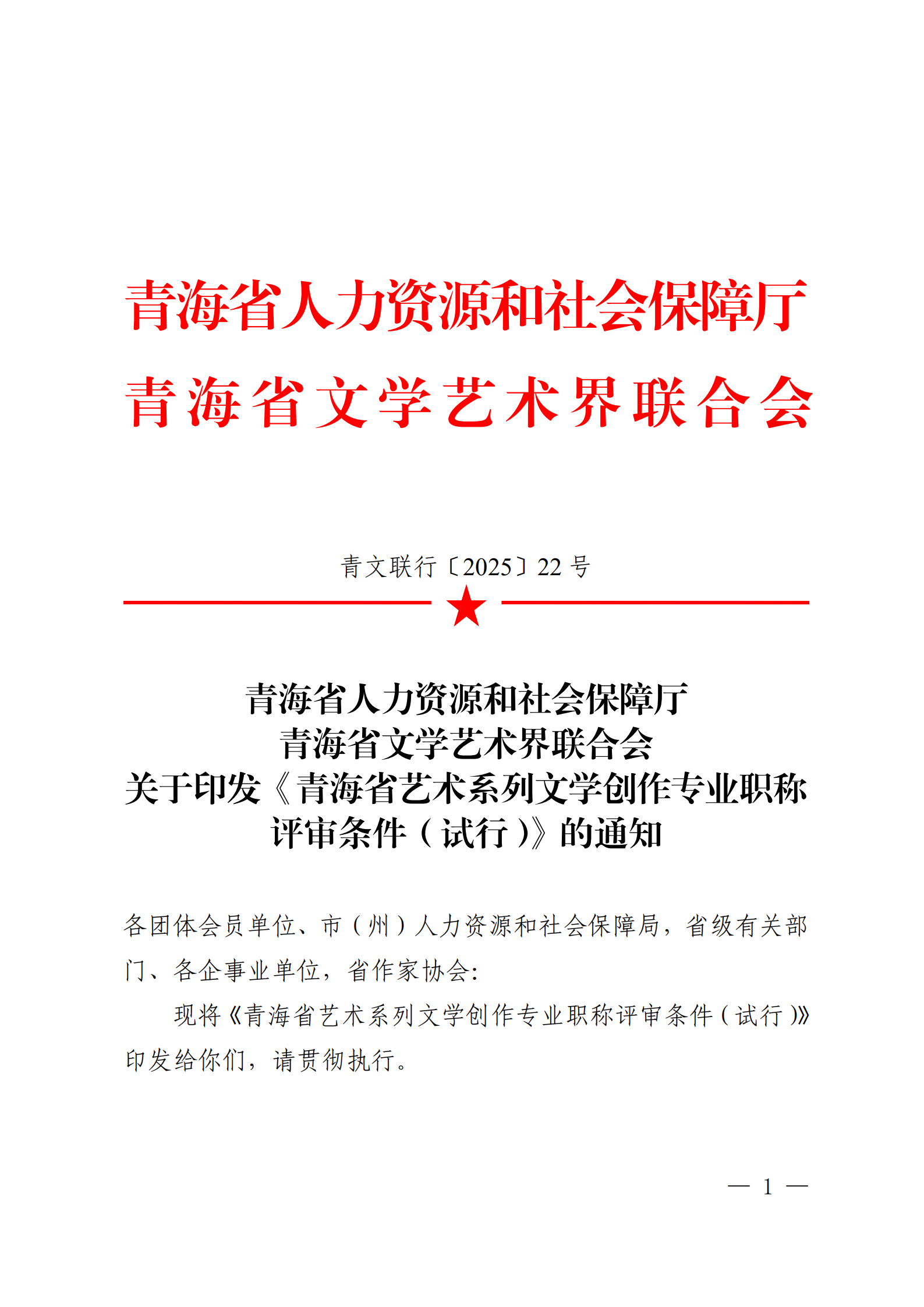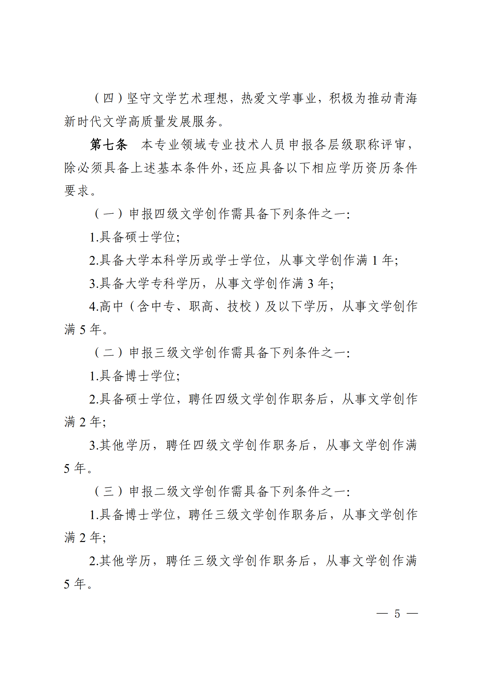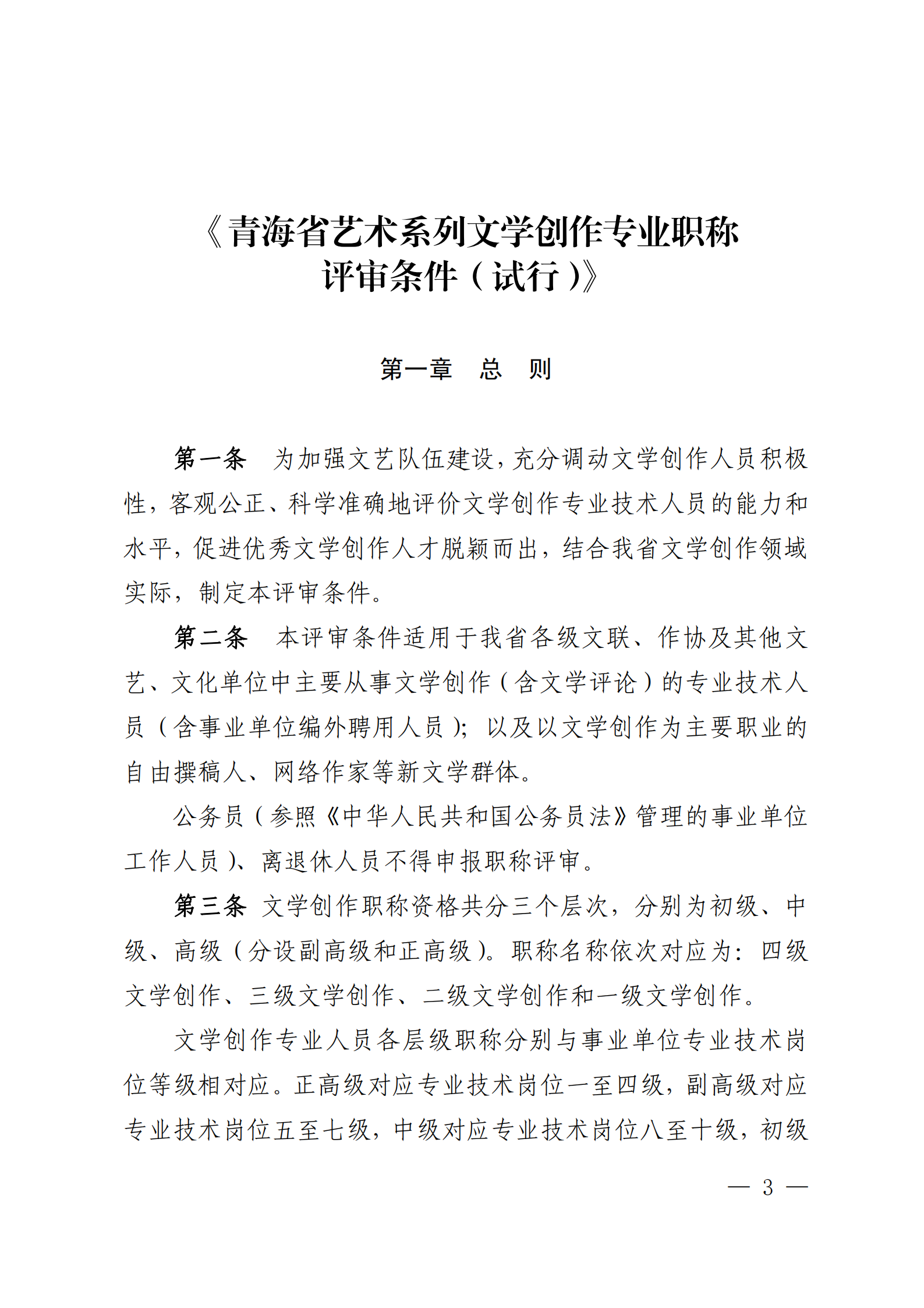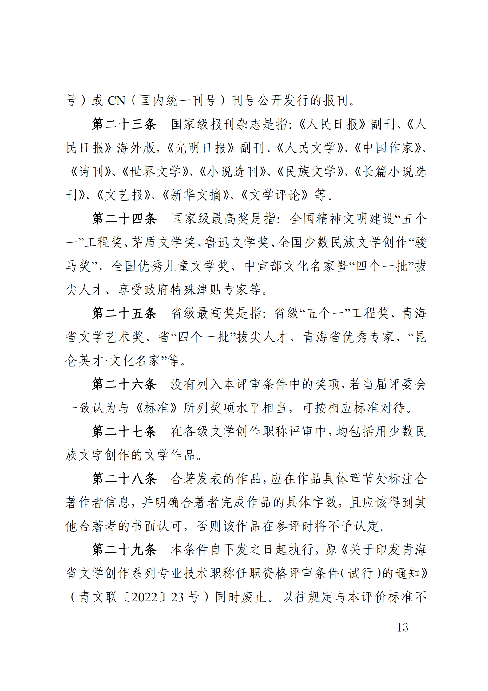 《青海省艺术系列文学创作专业职称评审条件(试行)》