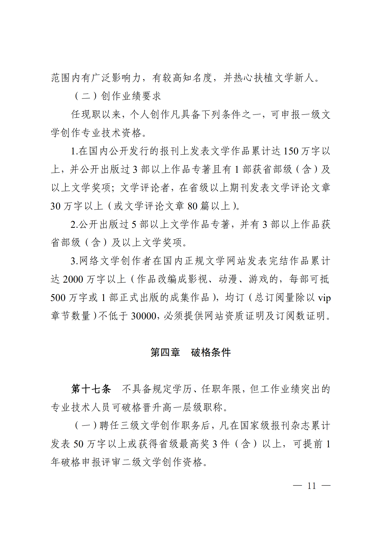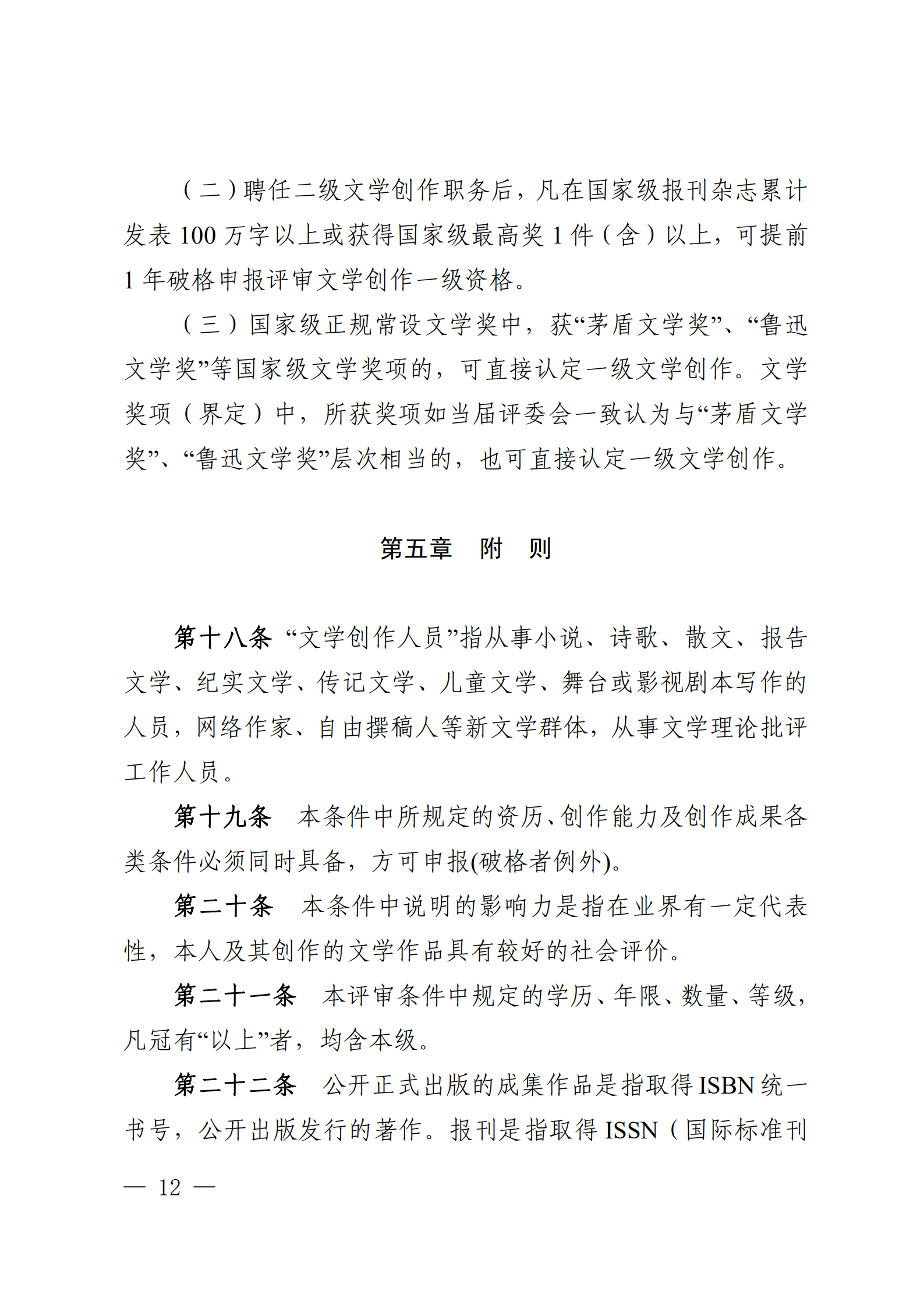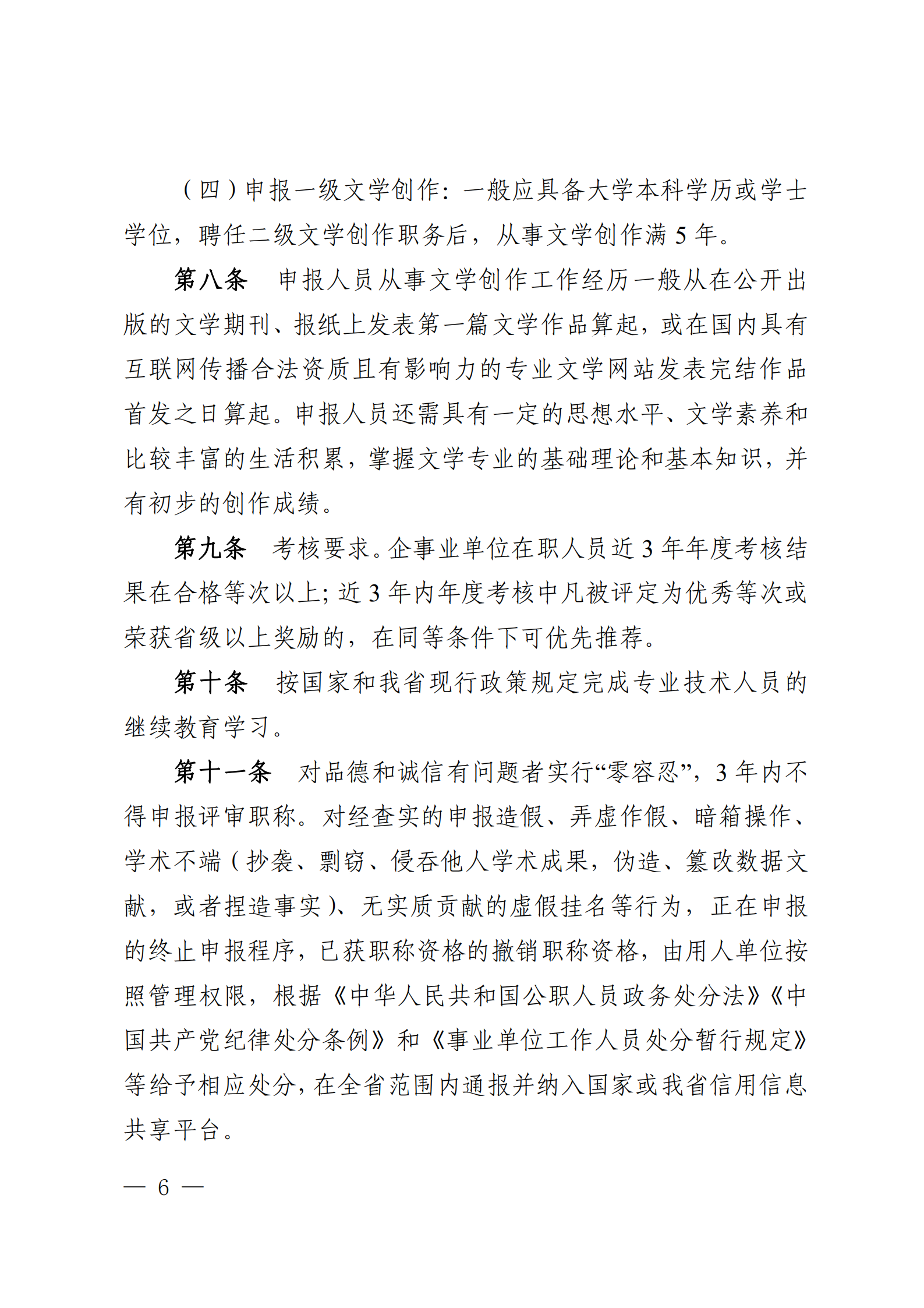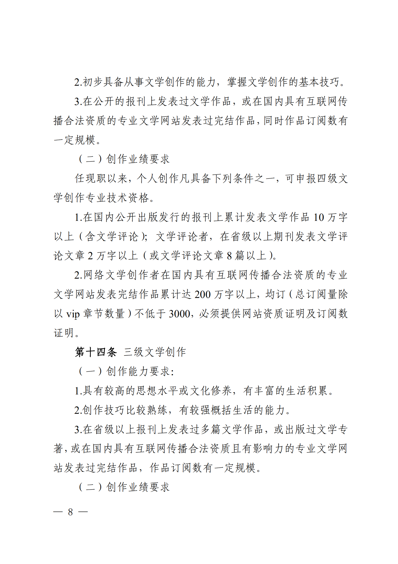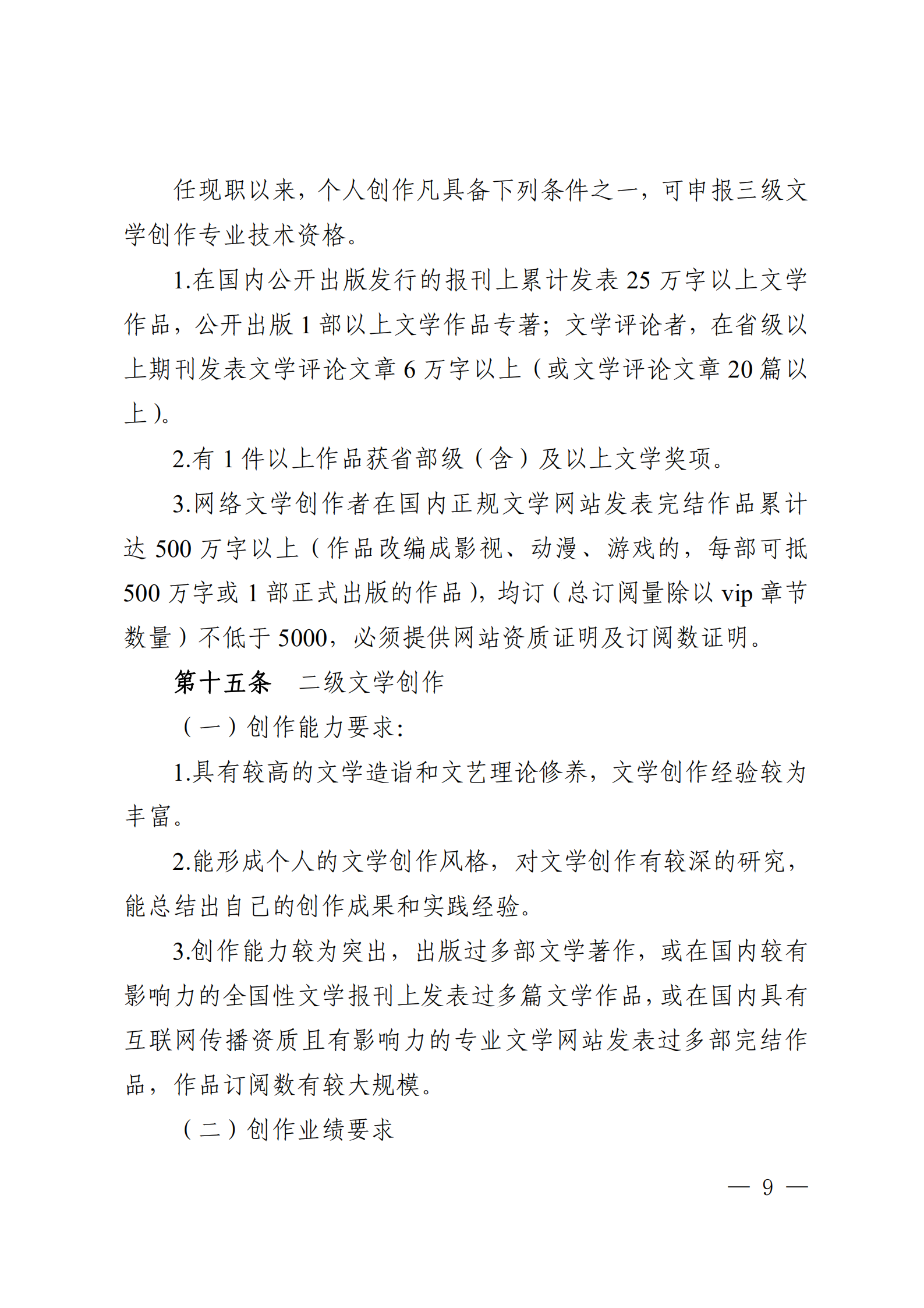 《青海省艺术系列文学创作专业职称评审条件(试行)》