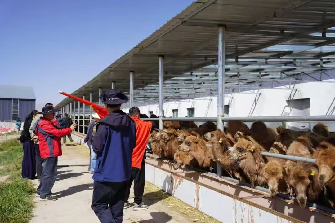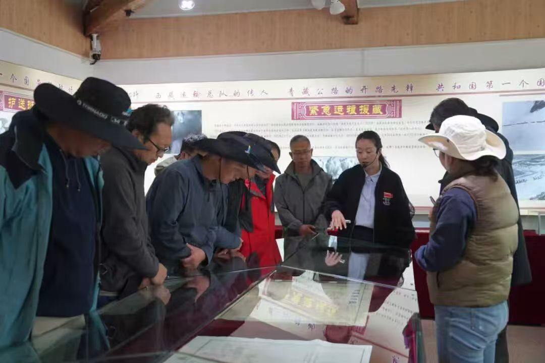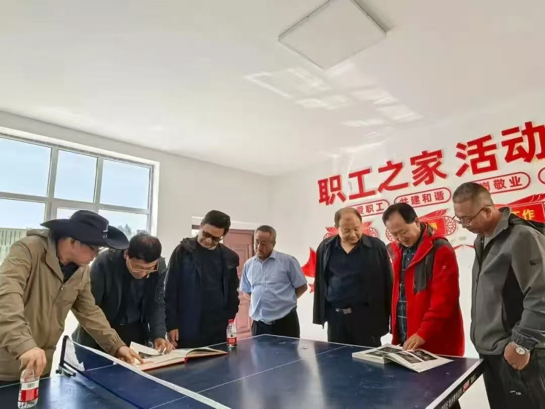 采风首站聚焦青藏驼队历史陈列馆,馆内大量实物、图片与文献资料,将驼场建设历程徐徐铺展。“一不怕苦、二不怕死,顽强拼搏、甘当路石,军民一家、民族团结”的“两路”精神,在泛黄老照片与斑驳工具中愈发清晰;随后探访的驼工礼堂、窑洞遗址及养殖场,更让艺术家们沉浸式触摸历史温度:粗糙土墙、褪色油灯与修补炕席,重现先辈“战天斗地”的建设场景;养殖场旁健壮的驼群,则奏响“艰苦创业”与“传承发展”的时空交响。