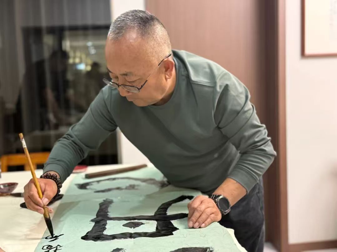 深入驼场腹地,采风团在田间地头、窑洞周边与驼群活动区开启自主创作。艺术家们或立或蹲或伏,以笔为刃、以墨为魂:有人以粗粝笔触勾勒窑洞沧桑肌理,还原先辈“住窑洞、啃干馍”的艰苦岁月;有人用明快色彩描绘驼群漫步、绿植点缀的新貌,展现红色土地振兴图景;更有书法家挥毫泼墨,让“两路”精神经典语录跃然纸上。创作间隙,大家交流灵感,力求让作品兼具“历史纵深感”与“时代鲜活性”。