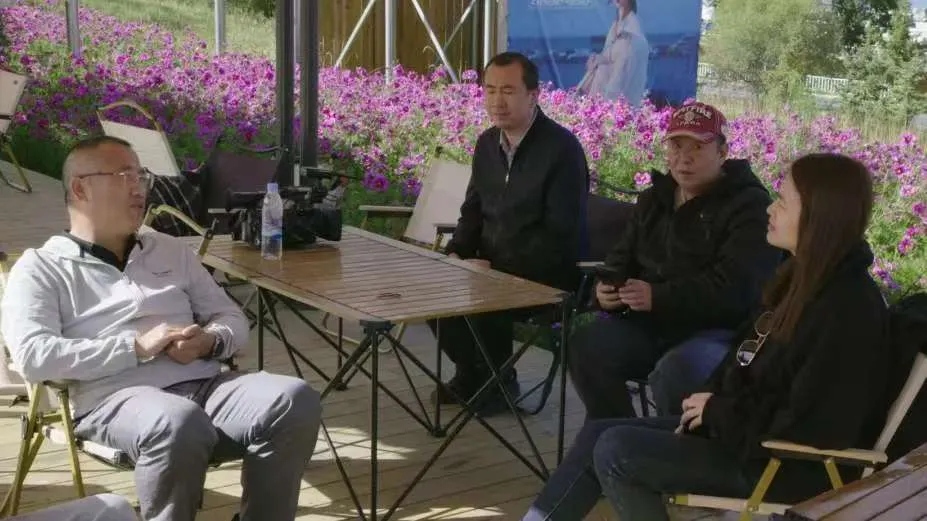 9月12日下午,在青海湖畔,青海省影视家协会与天津市电影家协会来到电影《小乔的夏天》拍摄现场调研慰问,与剧组主创进行交流。