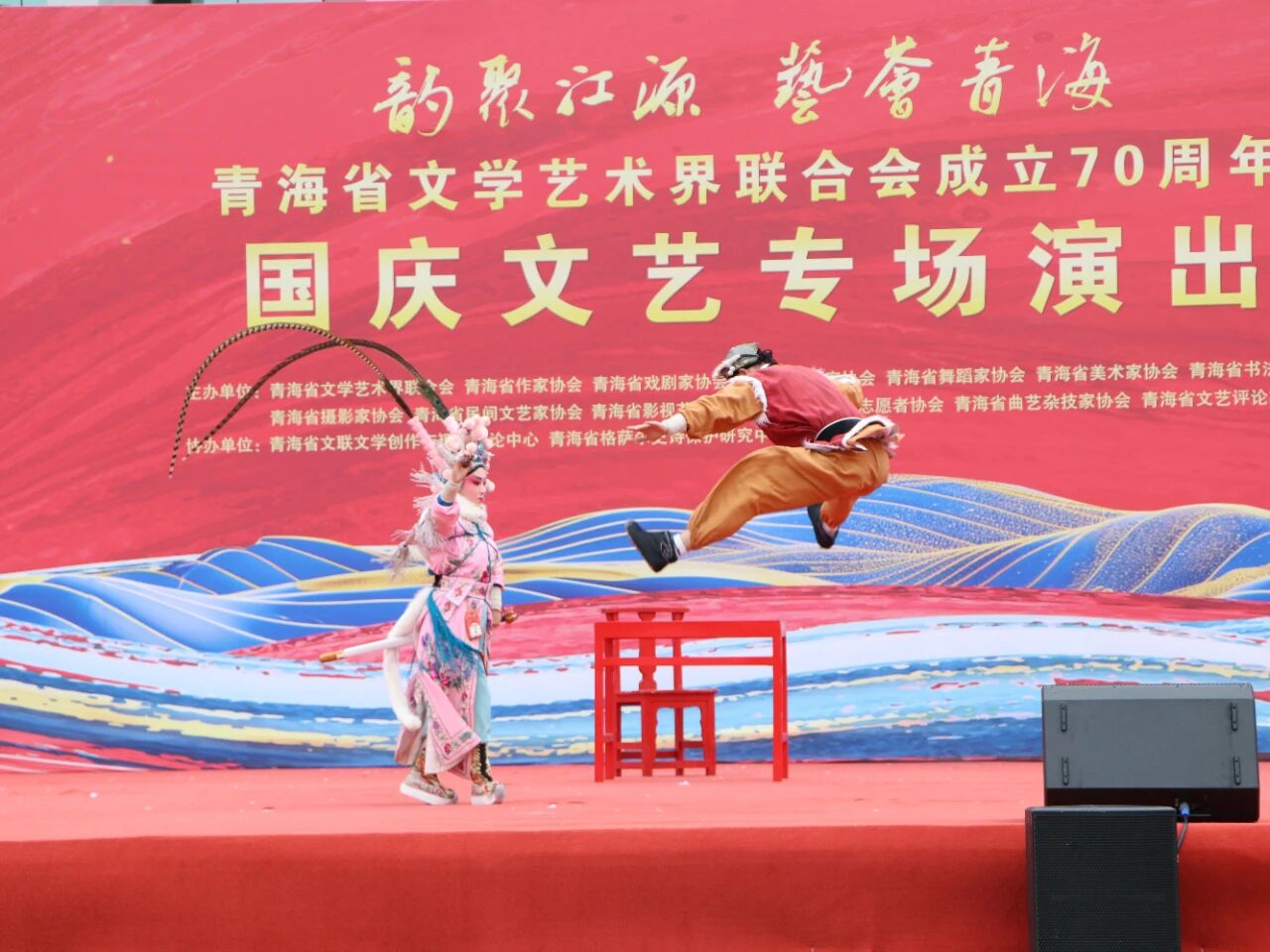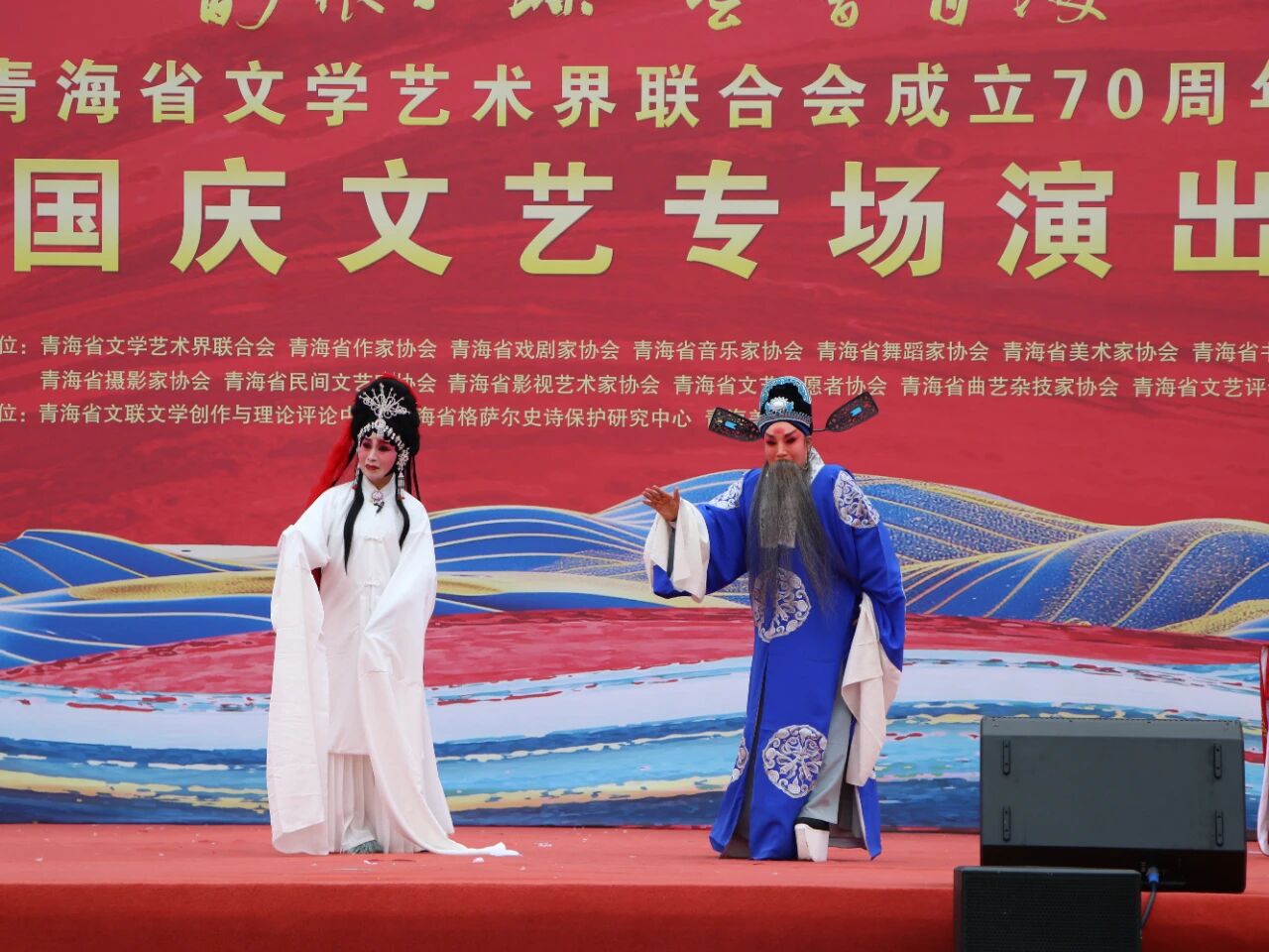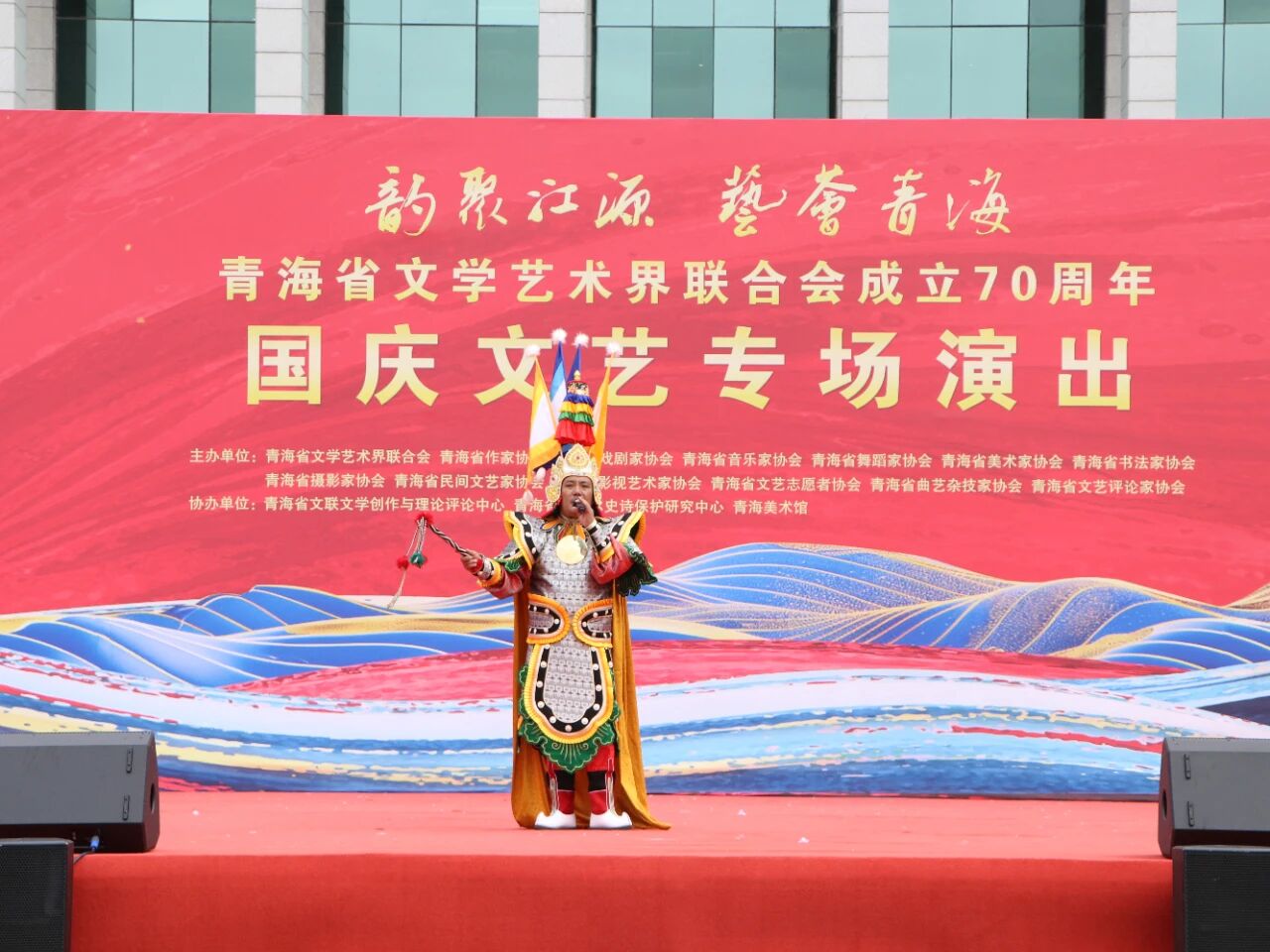 10月4日,由青海省文联、青海省戏剧家协会、青海省格萨尔史诗保护研究中心主办的“韵聚江源 艺荟青海”青海省文学艺术界联合会成立70周年国庆文艺专场演出系列活动“盛世华诞 戏韵河湟”戏剧・格萨尔专场演出在新宁广场精彩上演,以“戏剧+史诗”展现青海文联深耕文艺沃土、传承地方文化成果,致敬新中国76华诞。