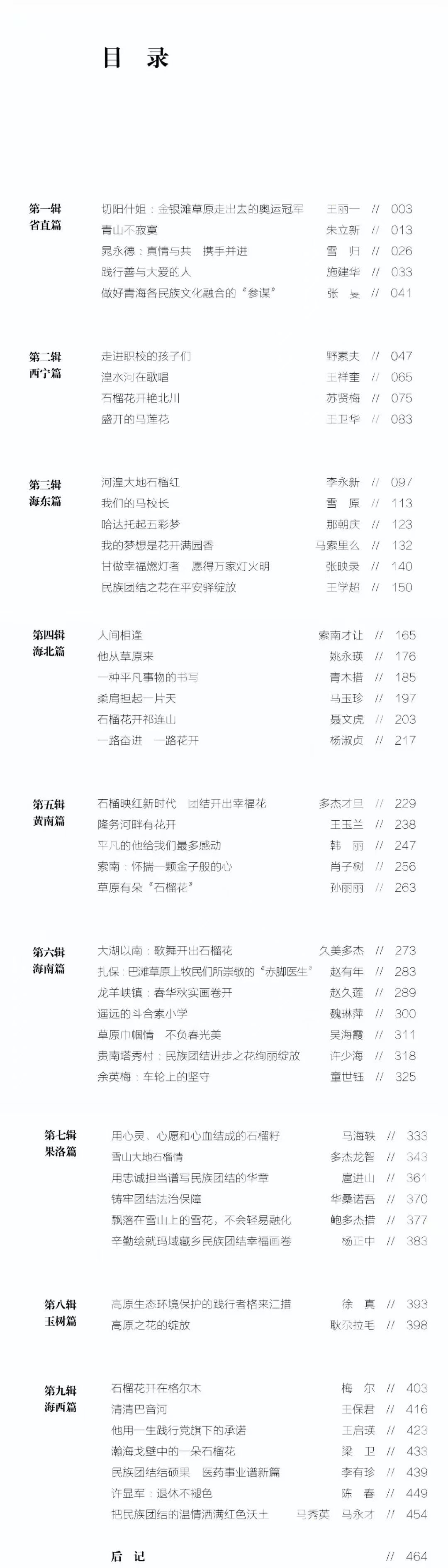 《石榴花开在青海——“铸牢中华民族共同体意识”文学笔会作品集》目录