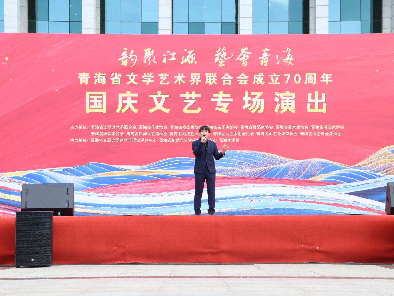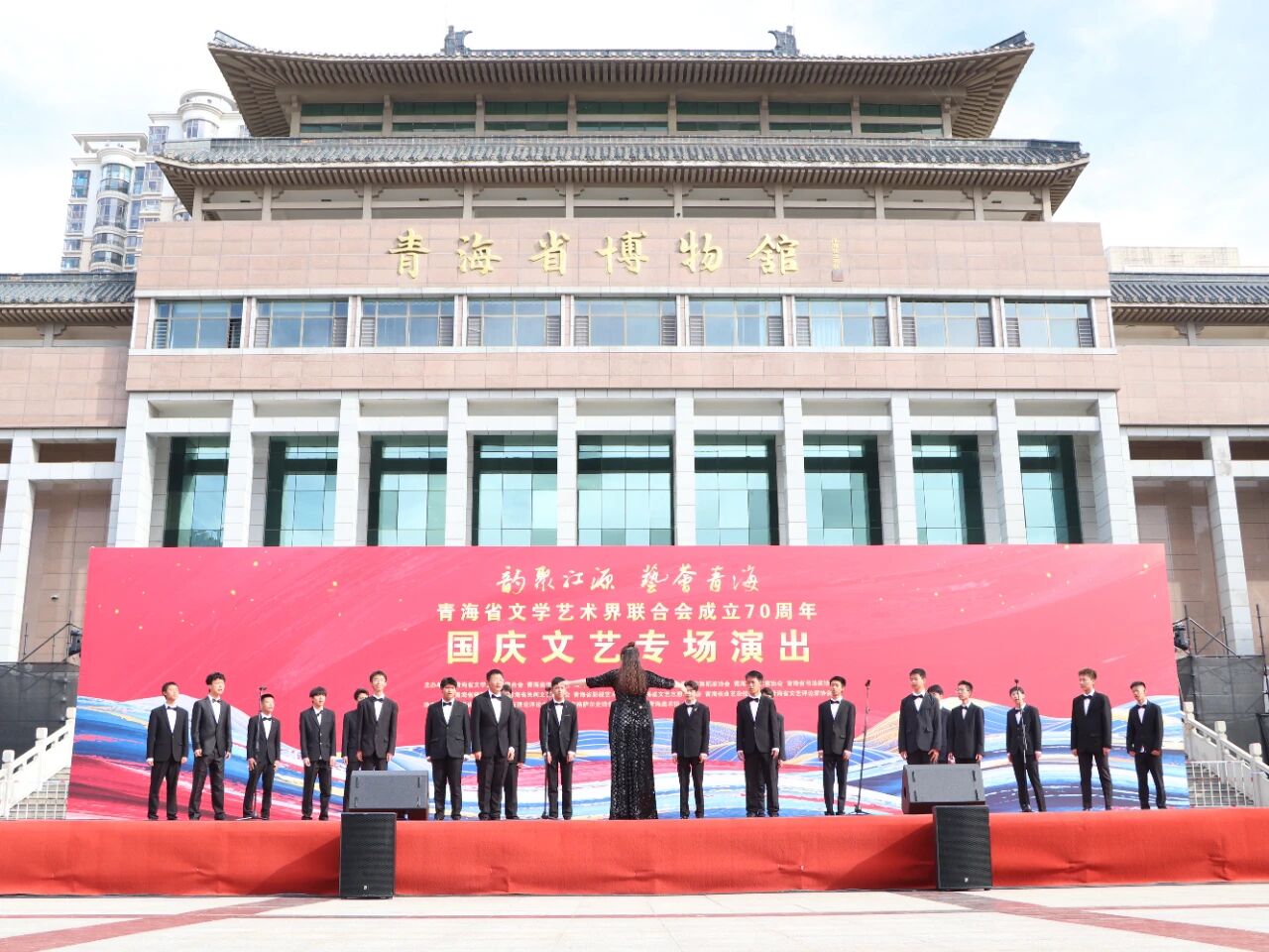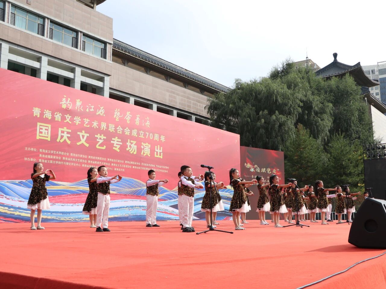 10月2日,“韵聚江源 艺荟青海”青海省文学艺术界联合会成立70周年国庆文艺专场演出系列活动“永远跟党走”青海省大、中、小学文化艺术展在新宁广场举办。西宁市全学段音乐名师工作室、全省多所大、中、小学校师生以歌、舞、诗朗诵等形式,分四个篇章展现学子风貌,呈现省文联“强基工程”结对帮扶推动基层精神文明建设的成果,传递对党与祖国的热爱。