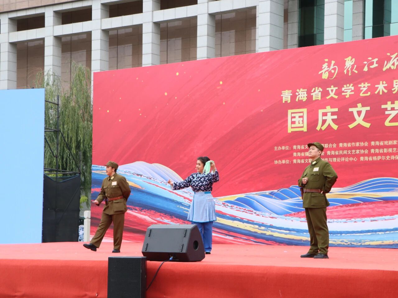 10月4日,由青海省文联、青海省戏剧家协会、青海省格萨尔史诗保护研究中心主办的“韵聚江源 艺荟青海”青海省文学艺术界联合会成立70周年国庆文艺专场演出系列活动“盛世华诞 戏韵河湟”戏剧・格萨尔专场演出在新宁广场精彩上演,以“戏剧+史诗”展现青海文联深耕文艺沃土、传承地方文化成果,致敬新中国76华诞。